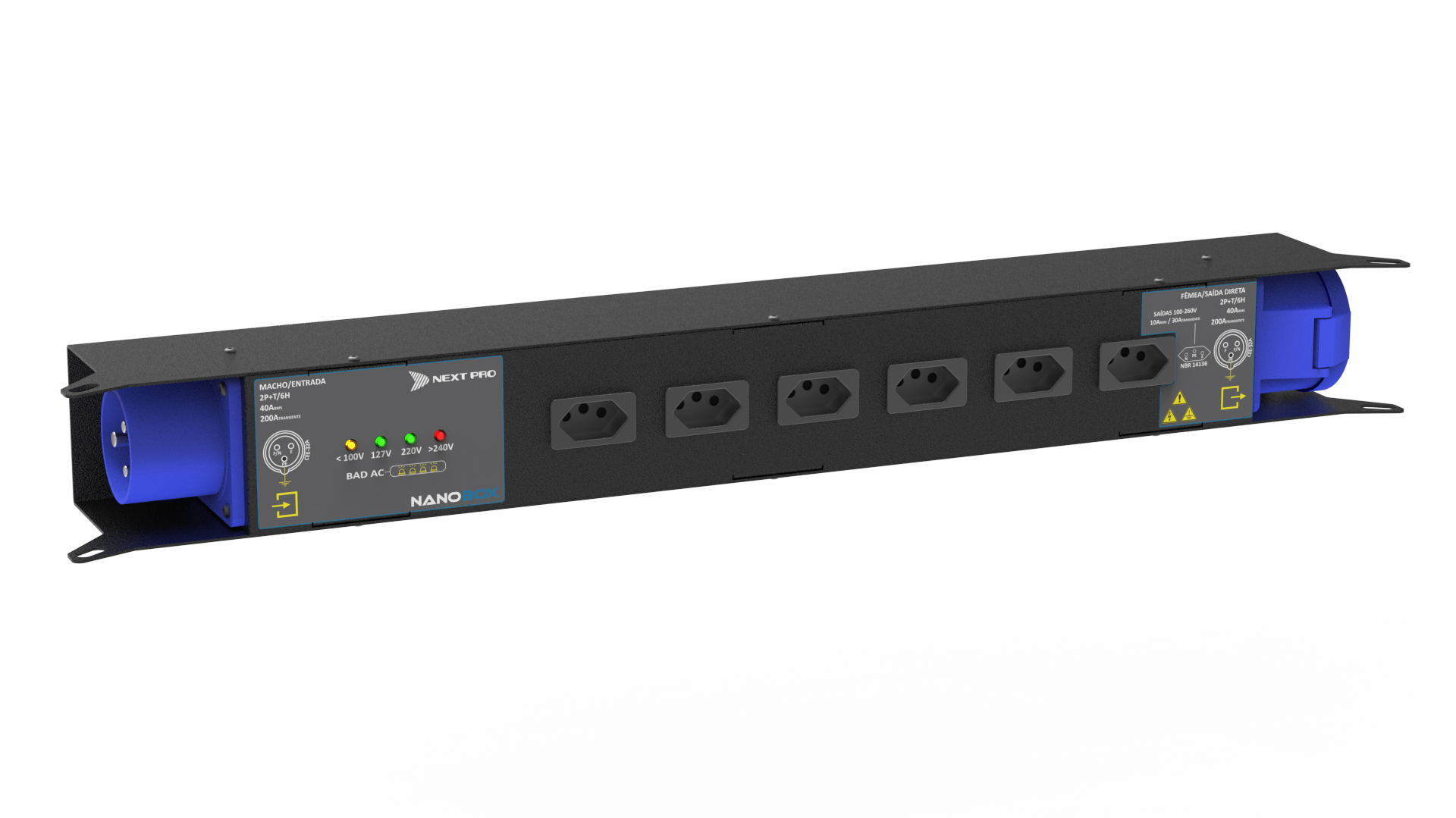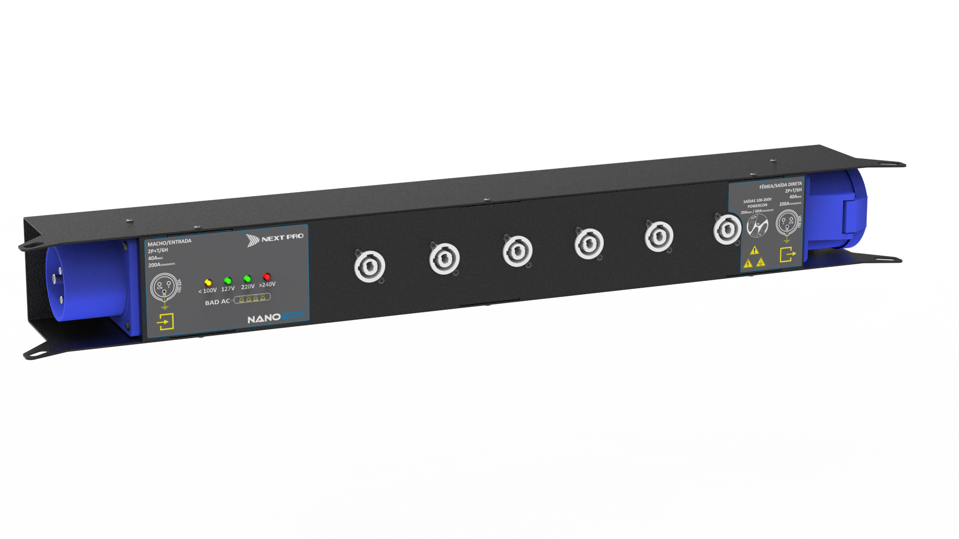 Para distribuir energia dentro dos mais avançados racks de amplificadores do mercado nada melhor que a mais avançada tecnologia de proteção jamais desenvolvida: o BAD AC. As novíssimas réguas de distribuição de energia da NEXT PRO são equipadas com este consagrado sistema herdado da Série PRO-R, que literalmente baniu os danos causados por energia elétrica inadequada.
