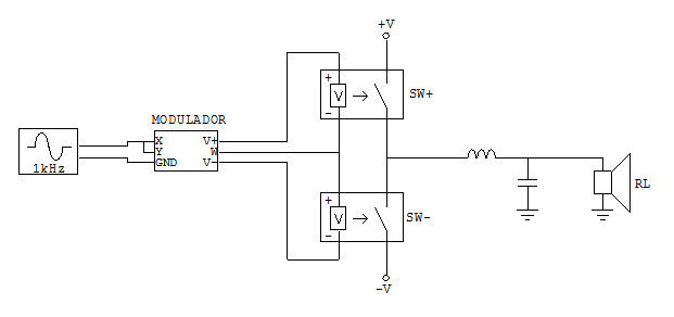 ► definição mais rigorosa: conversor chaveado tipo buck (abaixador de tensões) complementar simétrico, do tipo síncrono, onde o sinal de áudio faz o papel de "referência" de tensão.