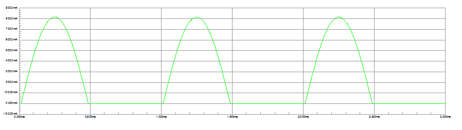 Figura 4 – a corrente em Classe C para um sinal senoidal no dispositivo Is+ (o Is- foi retirado)