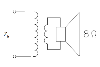 Aplicando em uma linha de 141,4V com conjunto alto-falante/transformador de 10W, resulta em uma impedância ZR = 2000Ω. Em outras palavras, a impedância do alto-falante, originalmente de 8Ω, foi "refletida" para 2000Ω, através do transformador de linha.