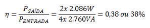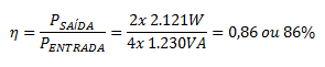 Por exemplo: se o aparelho fornece 500W, mas consome 1000VA, sua eficiência é de 50% - simples assim!