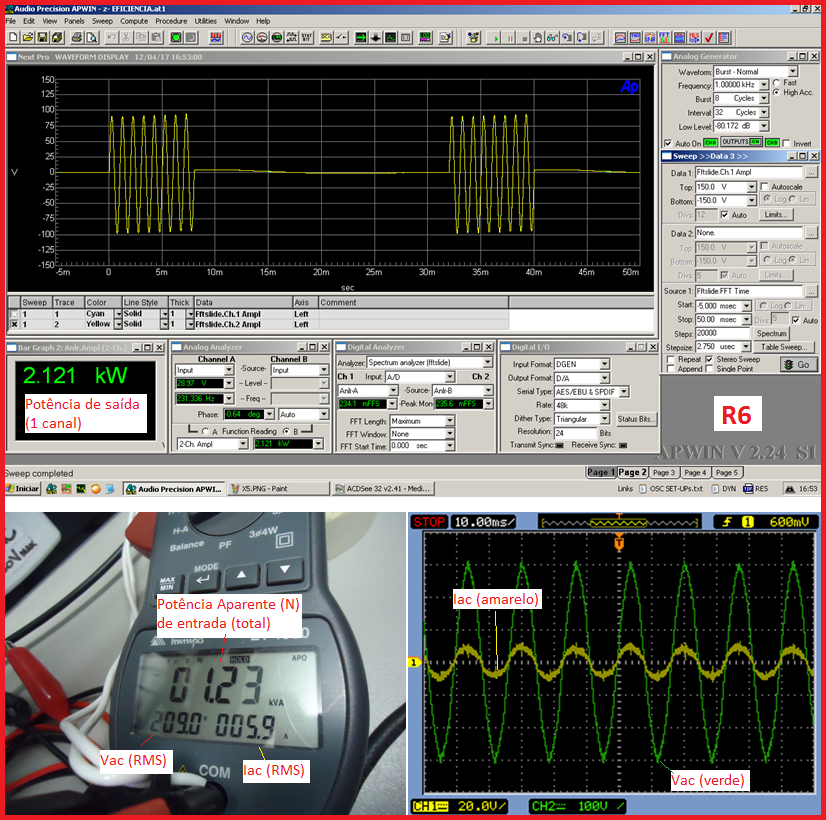 Finalmente, para colocar a prova o slogan: "amps a autotransformador são mais eficientes que amps de fonte chaveada", vamos apresentar os dados da NEXT PRO R6: