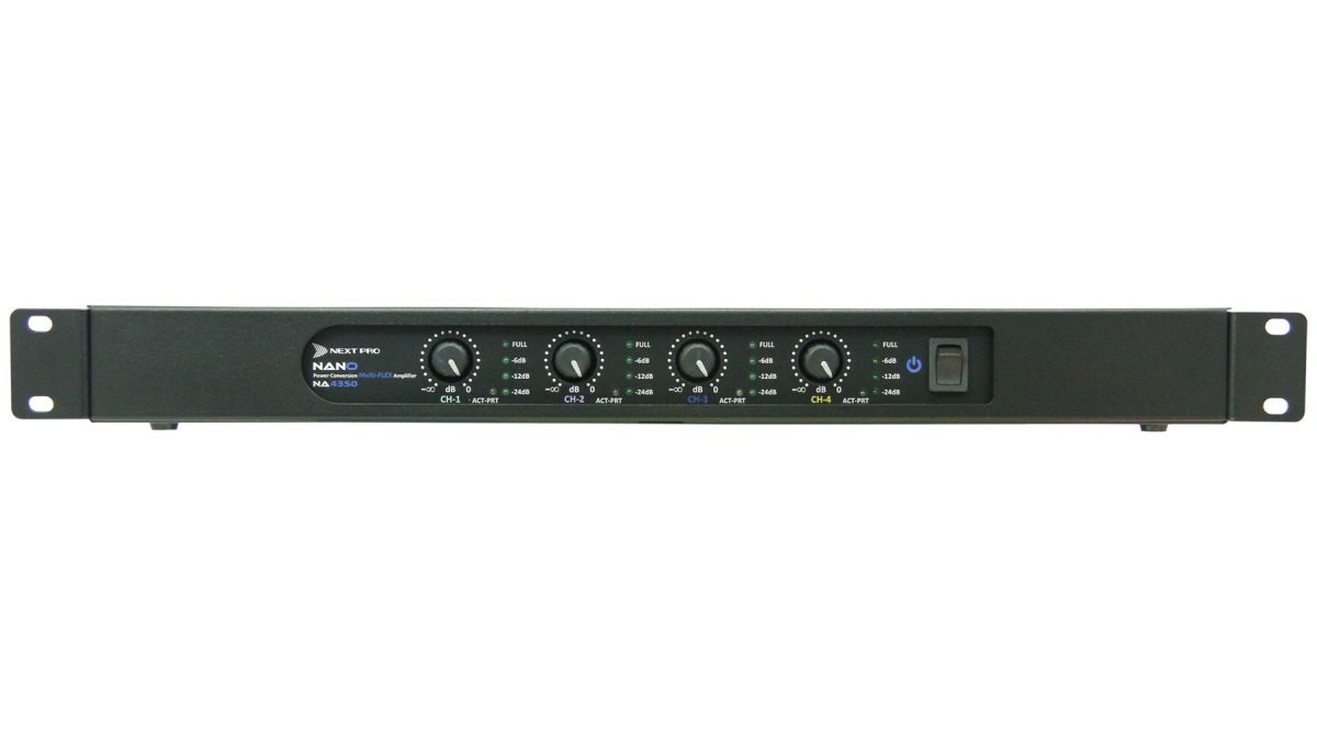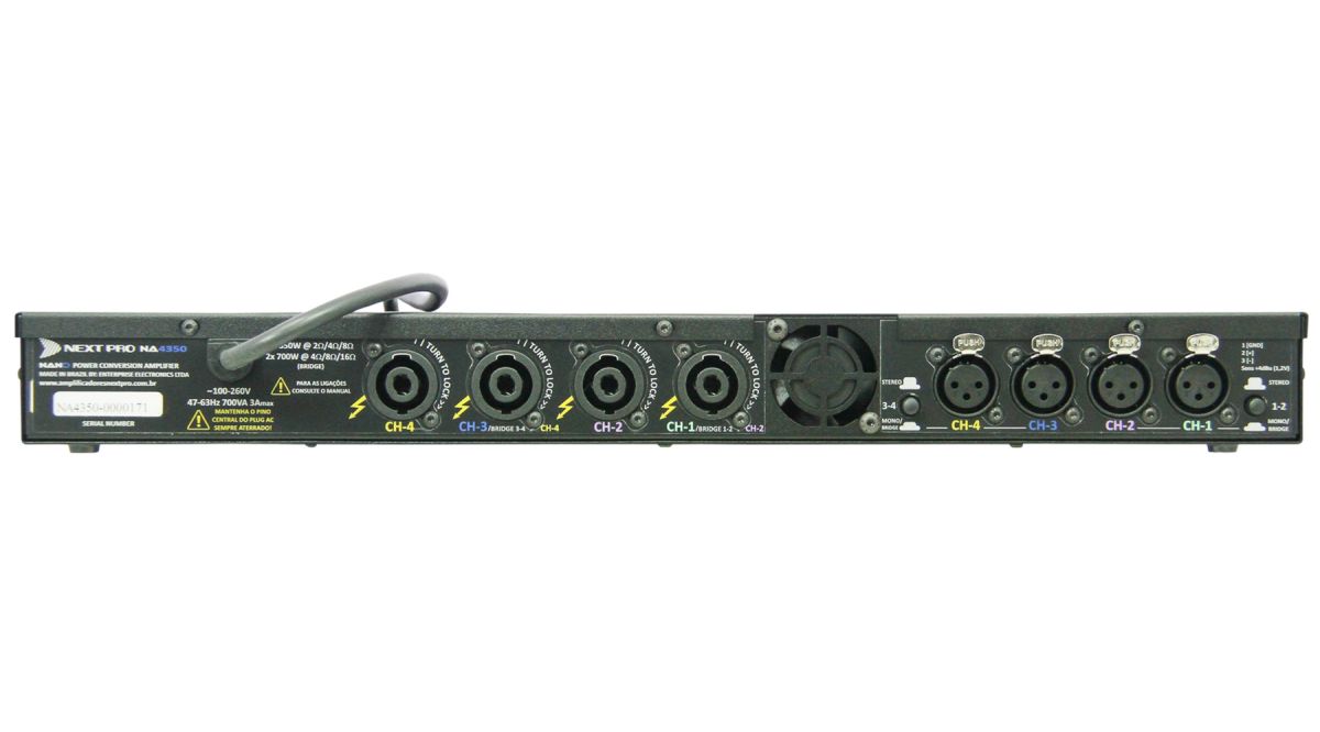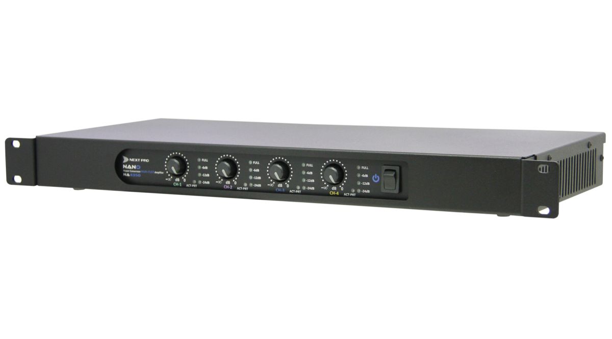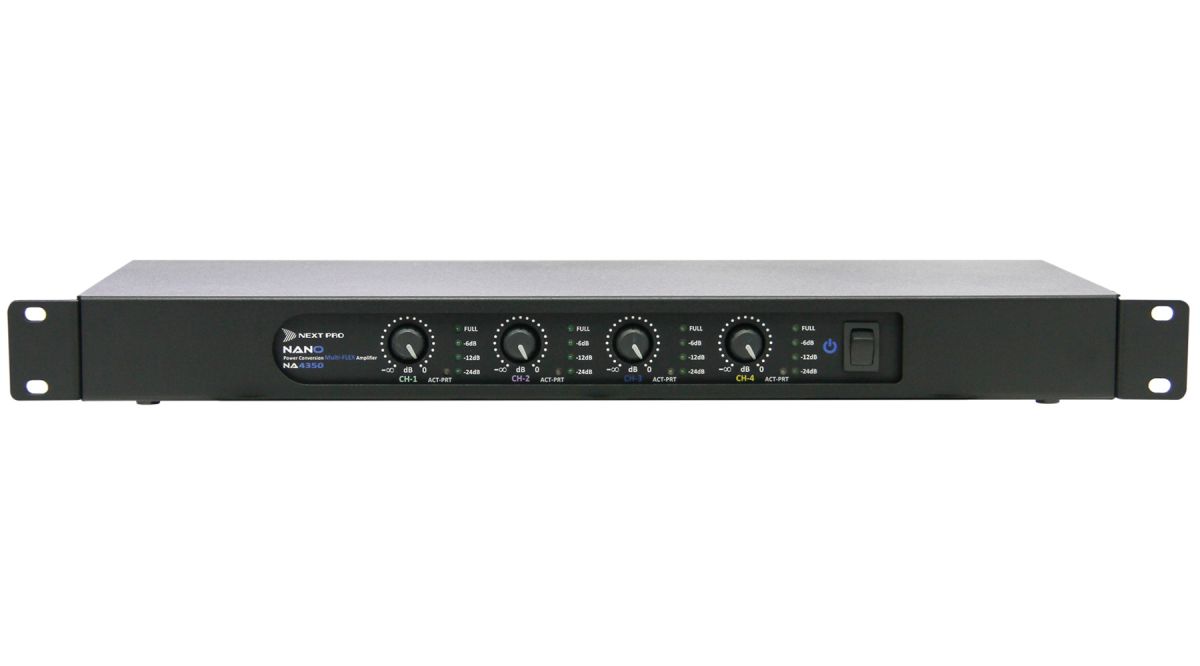 Com potência de 4x 350W, 1U de rack e pesando apenas 3kg, o NA 4350 é uma escolha extremamente versátil para salas de cinema, templos, teatros e instalações de qualquer tipo. Além de sua potência total ser praticamente a mesma em qualquer impedância, também se mantém com qualquer AC entre 100-260V, podendo cair até incríveis 65Vac, e apenas neste caso haverá redução (proporcional) de potência! Devido as suas dimensões e peso extremamente reduzidos o NA 4350 pode até mesmo ser montado em racks de periféricos, resultando em uma instalação drasticamente mais compacta e leve que as obtidas por amps analógicos convencionais.
