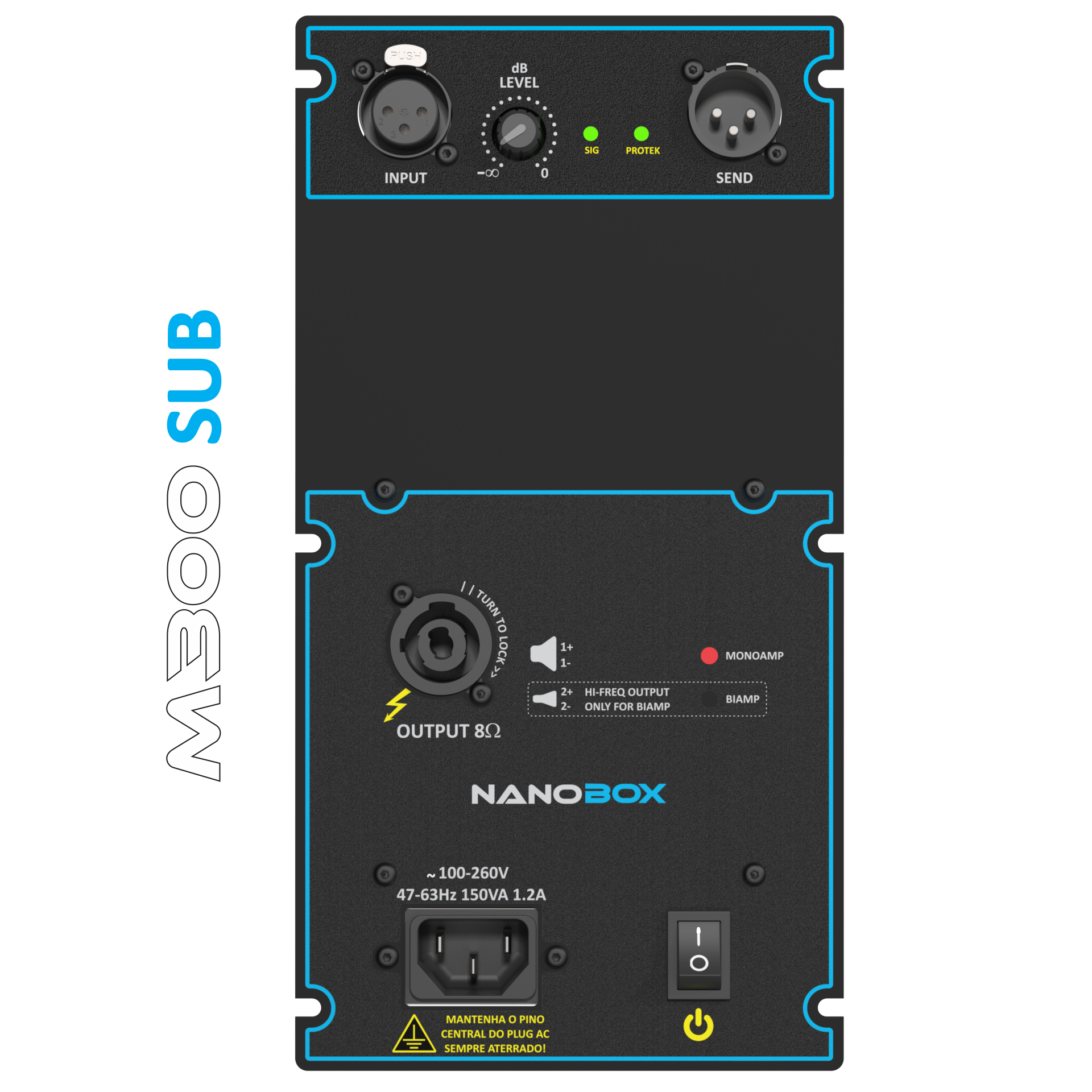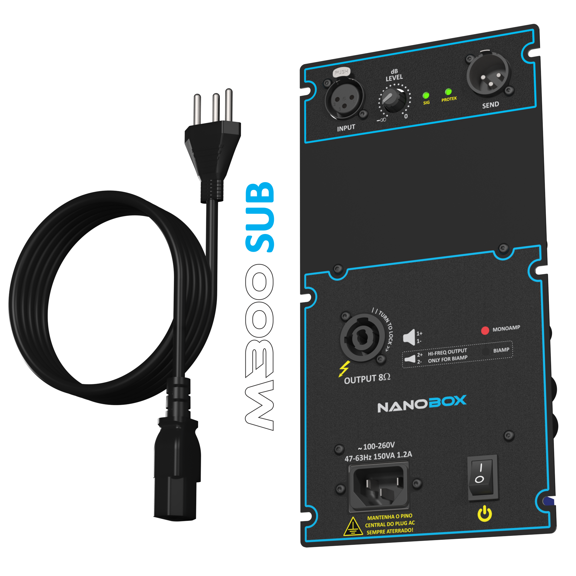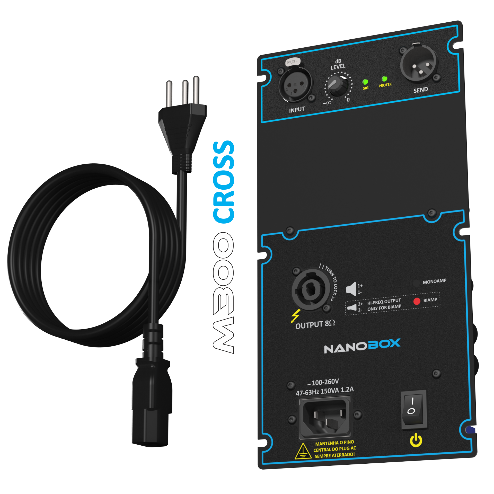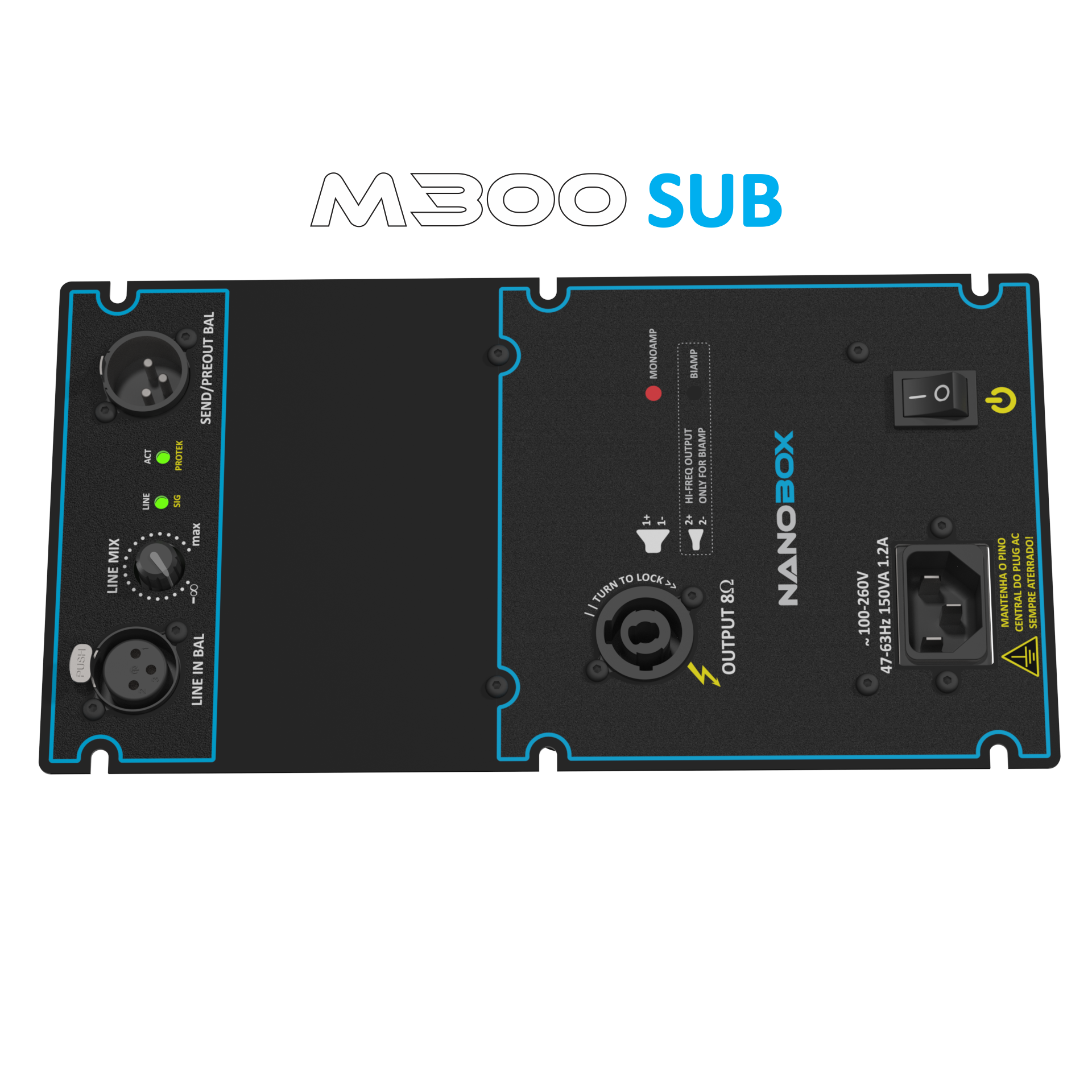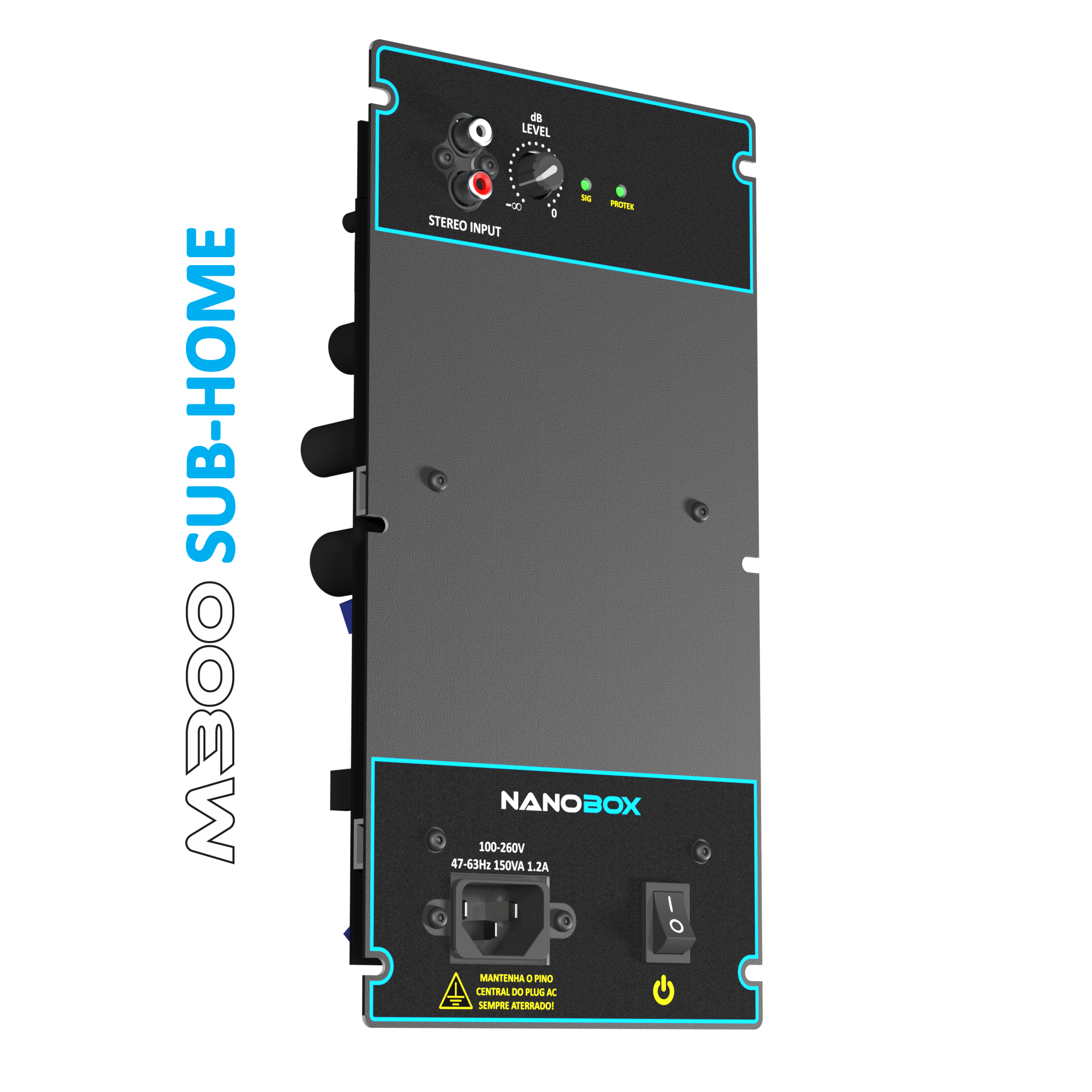 Com potência de 300W e pesando apenas 680g, a família M300 é a escolha ideal para ativar caixas de pequeno porte. Além da sua potência variar pouco na faixa 4-8Ω, ela também se mantém com qualquer AC entre 100-260V, podendo cair até 85Vac, e apenas neste caso haverá redução proporcional de potência. Seu sistema de dissipação de calor convectivo impede a entrada de ar dentro do circuito eletrônico, mantendo-o selado das condições do tempo e totalmente silencioso. Versátil, a família M300 é oferecida em quatro versões: FULL, SUB, SUB HOME (monoamp) e CROSS (biamp). As versões SUB, SUB HOME e CROSS possuem crossover Linkwitz-Riley de 12dB/8a integrado, sendo a versão SUB HOME específica para subwoofers residenciais de home-theater, com as entradas em conectores RCA não-balanceados e sem saída para caixa escrava. Combinando amps digitais de última geração e tecnologia aprimorada de fontes chaveadas ressonantes à recursos poderosos como o MultiFlex, a família M300 não possui similar no mercado.