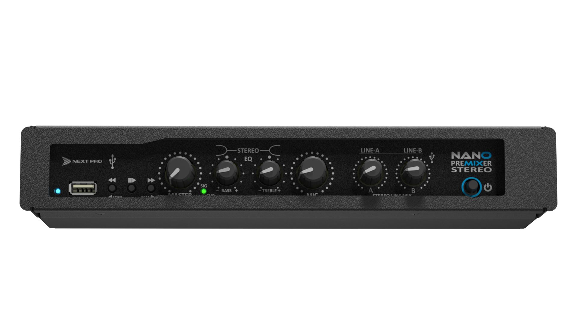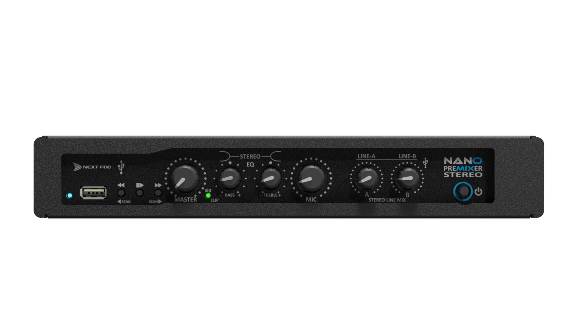 O PreMixer Stereo é um mixer stereo com funcionamento similar as mesas de som e recomendado para palcos e púlpitos. Com duas entradas de linha equipadas com o exclusivo AutoMix, uma entrada de microfone balanceada com Phantom Power e MP3 Player integrado; o PreMixer Stereo oferece uma solução ultra-compacta, versátil e completa, com recursos vitais para a sonorização em stereo, tais como: