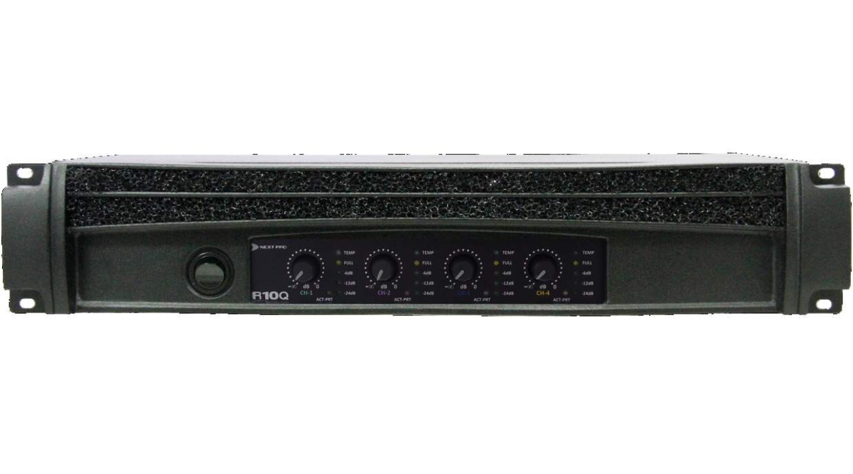 Embarcando tecnologias de 2a geração e potência de 4x 2250W em somente 9kg, a R10Q é adequada a qualquer aplicação dentro dos modernos sistemas de P.A., graças a sua qualidade sonora aperfeiçoada e aos renovados limiters auto-adaptativos interpolados de 2a geração. Sua potência total se mantém com qualquer AC entre 100-260V, podendo cair até incríveis 65Vac, e apenas neste caso haverá redução proporcional. Com sistemas renovados de 2a geração, a R10Q consolida a expertise tecnológica da Next Pro ao combinar áudio multi-funcional com enorme potência e a suíte de proteções mais completa do mercado.